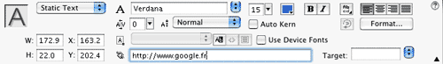 Il est aussi possible créer du texte dynamique en créant le champs de texte avec les actions directement. On utilise alors la méthode createTextField et on place ce champs texte dans le scénario principal : _root. Nous donnons un nom d'occurence au texte : monTexte.