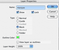 3. Double-cliquez sur ce dernier calque, qui sera le masque, une fenêtre s'ouvre, cocher : masque.